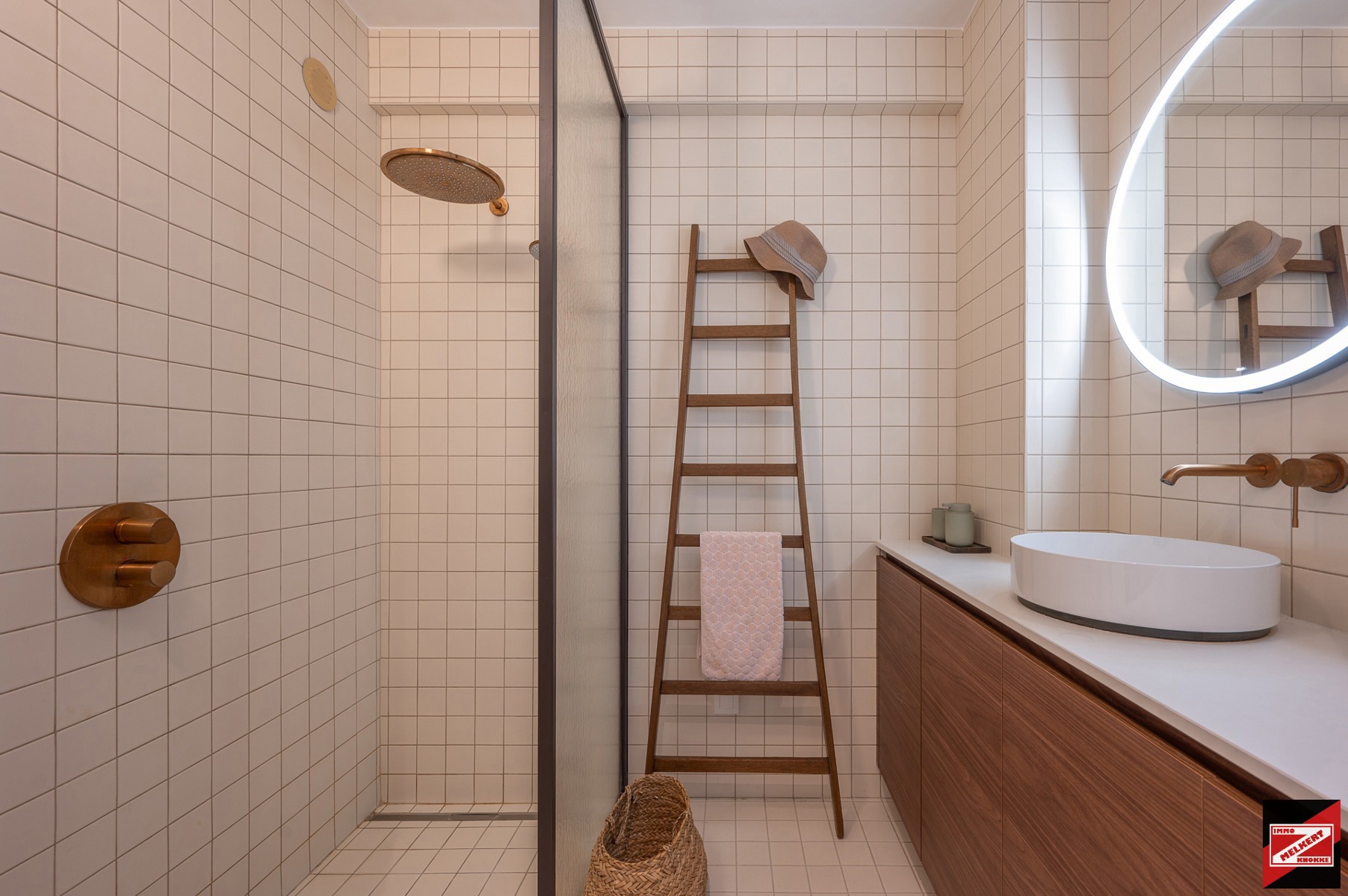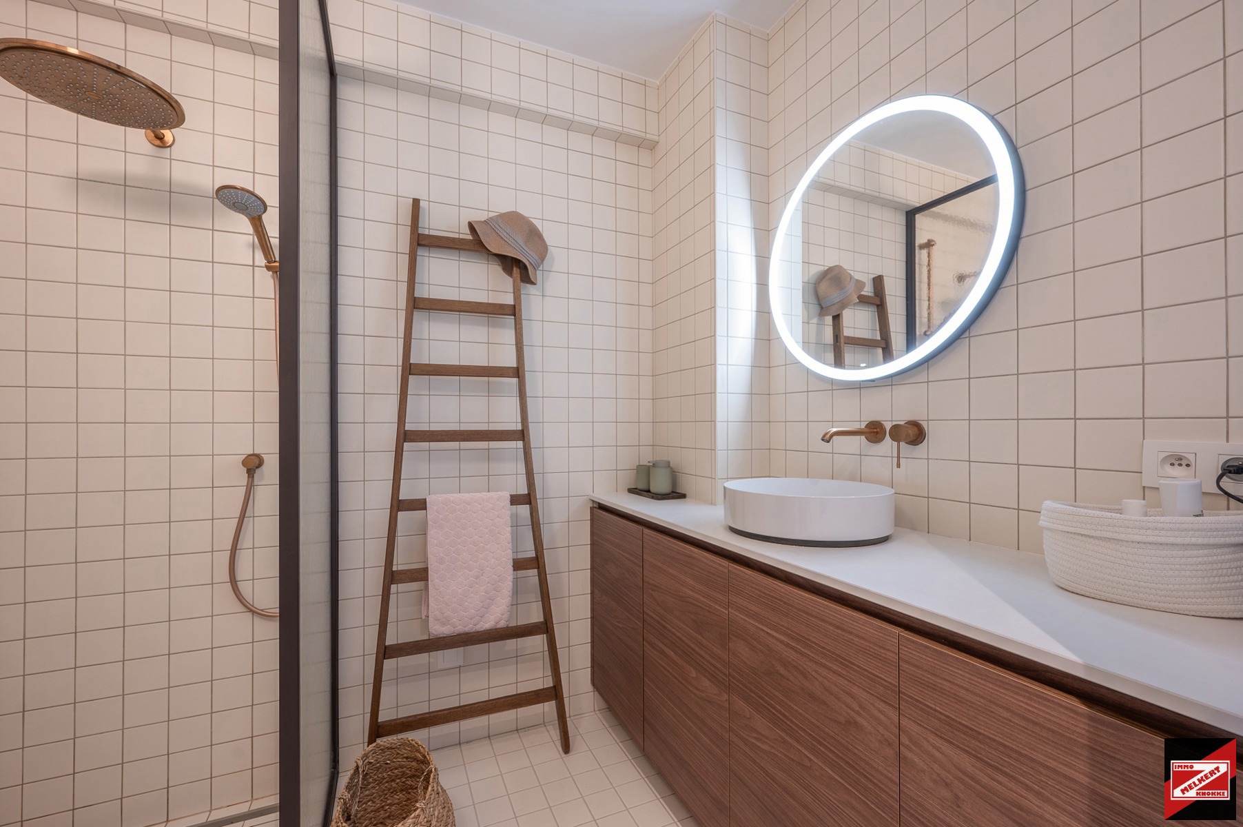 Stijlvolle badkamer met inloopdouche en lavabomeubel
